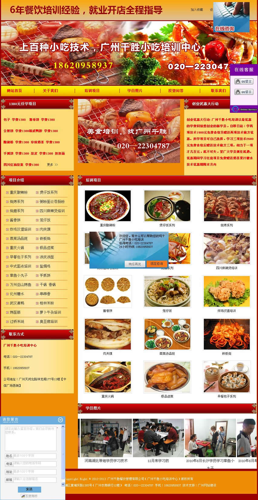 廣州千勝小吃培訓(xùn)中心座落在風(fēng)景秀麗的廣州天河區(qū)。專業(yè)從事飲品、特色小吃、地方小吃、私房菜、地方特色飲食的培訓(xùn)研究機構(gòu),擁有多名專業(yè)培訓(xùn)老師,都擁有精湛的技術(shù)和豐富的開店經(jīng)驗。中華美食源遠流長,博大精深。五千年傳統(tǒng)文化成就了多種不同的美食文化,廣州千勝小吃培訓(xùn)中心作為餐飲行業(yè)里的嬌嬌者,為傳承中華美食文化,匯集國內(nèi)外餐飲食品行業(yè)研發(fā),教育培訓(xùn),運營管理,餐飲策劃,特色小吃培訓(xùn)等各方面的專家學(xué)者。從事美食文化的傳播與推廣工作,以倡導(dǎo)美食新概念和標準化。把“傳統(tǒng)與時尚,美味與健康”完美結(jié)合,把美食制作推向簡易和標準化的新高度,讓每一個人都會做美食,使客戶達到零風(fēng)險創(chuàng)業(yè),創(chuàng)造高回報的價值,真正達到相互共贏。